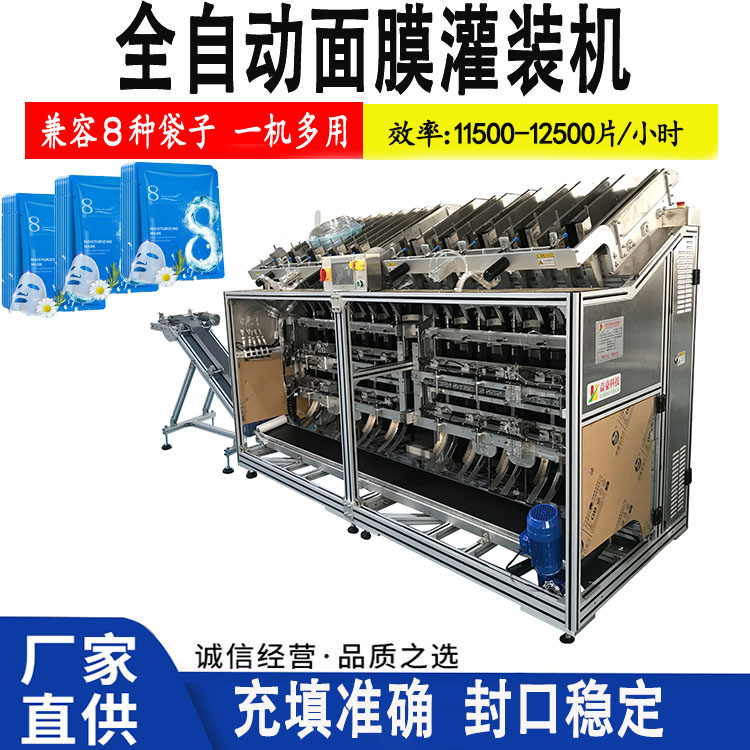 面膜灌裝機的操作步驟如下:自動下袋、自動填充、自動封口、打碼、成品輸出、自動計數、無袋不充填、無袋不封口;