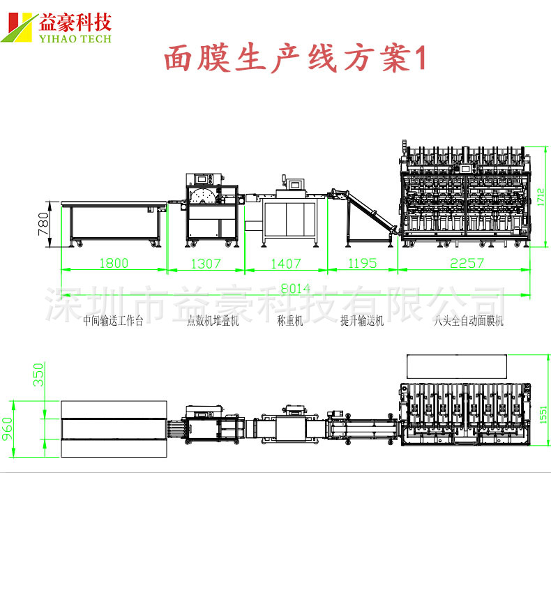 4.面膜灌裝機生產線工作流程:罐精華液 —封口—打生產日期 ——稱重檢測 —產品堆疊(3—10片一疊)—包裝封盒—裝箱 —發貨。
