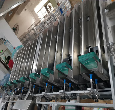 1、面膜放料區(qū)域空間大(8個(gè)工位批量生產(chǎn),效率高,也不會(huì)因?yàn)閬?lái)不及放面膜而導(dǎo)致停機(jī))
